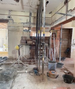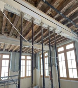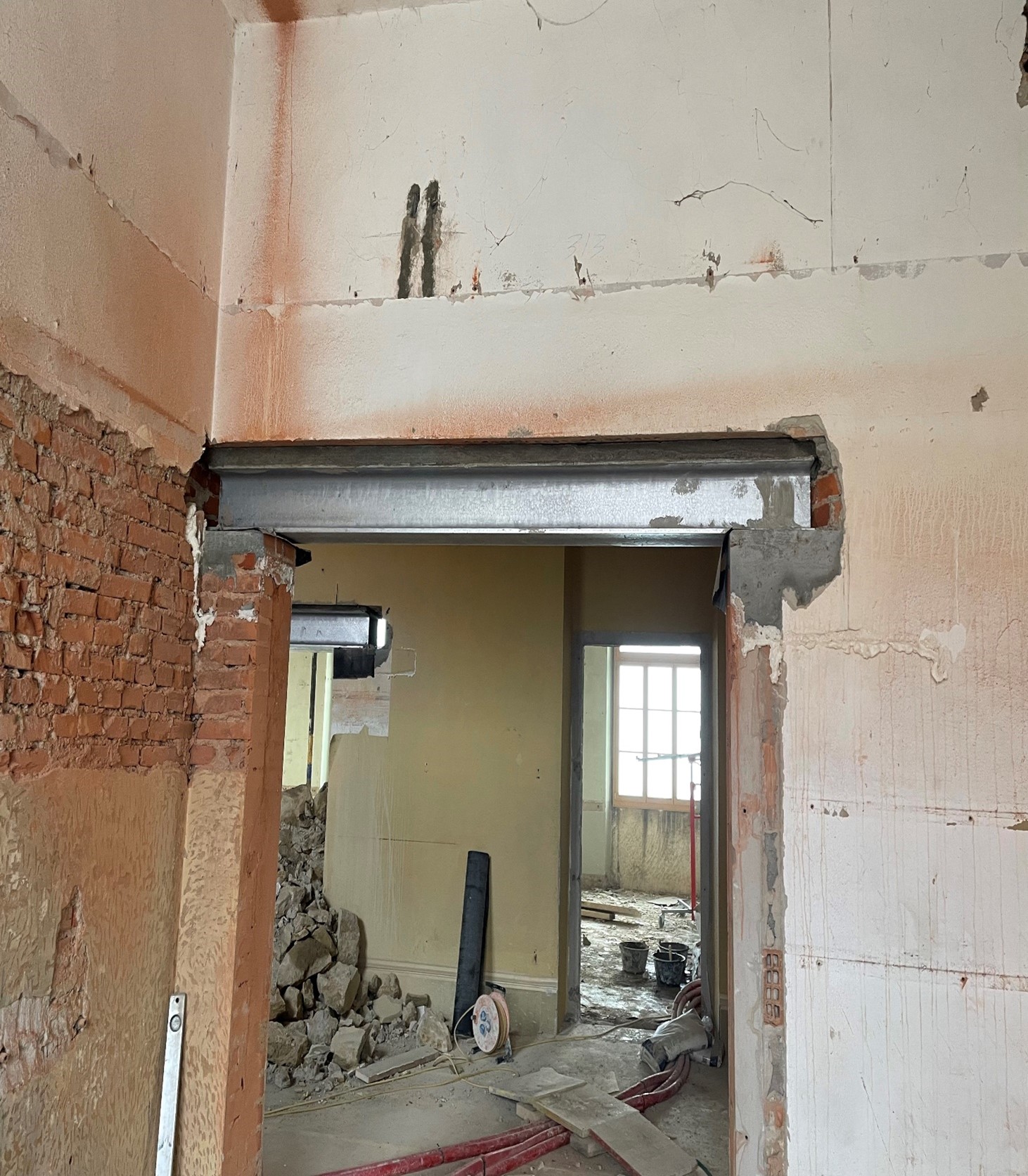 Création d’un ascenseur, ouvertures de portes, abaissement du sous-sol, démolition, évacuation des planchers et plafonds