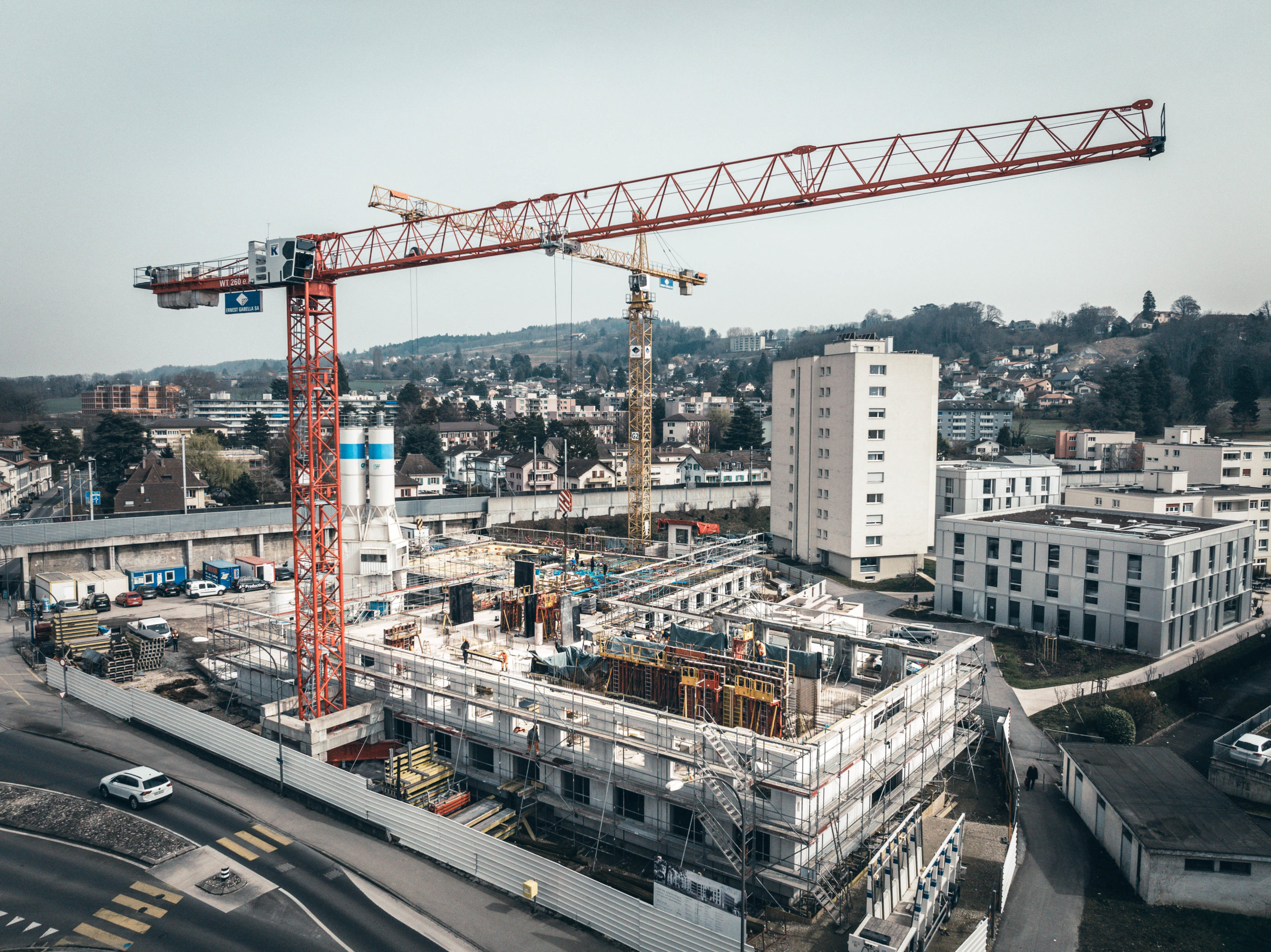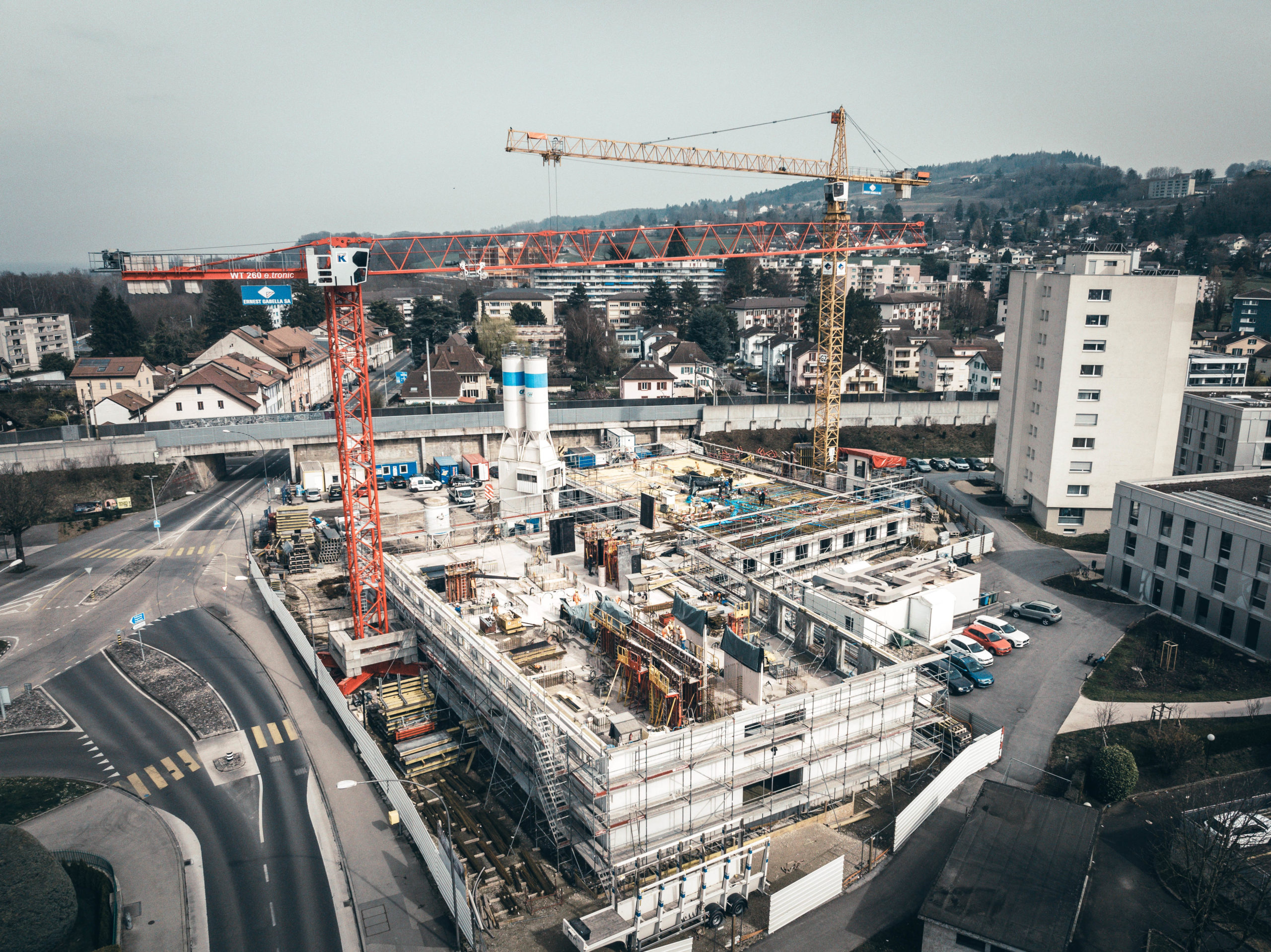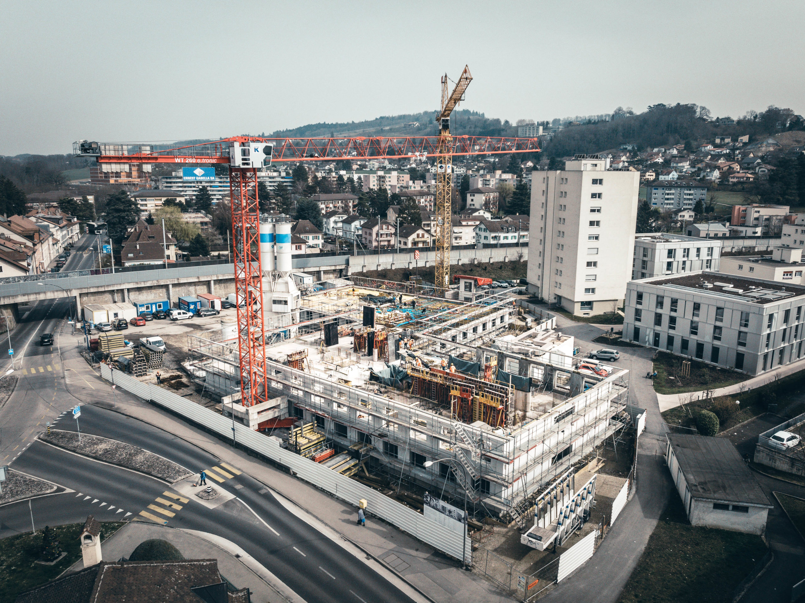 Construction d’un EMS et d’appartements protégés sur 3 bâtiments avec béton 4.2:4 blancs et façades préfabriquées